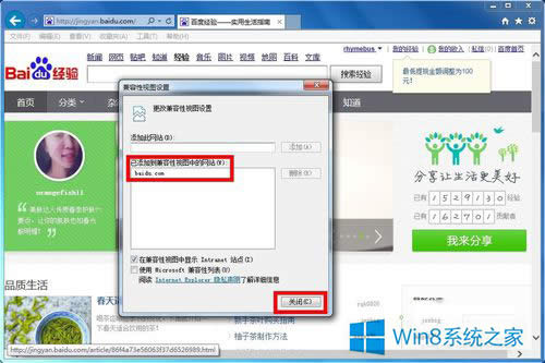 3、添加成功,在兼容性视图页面可以看到网站网址,如下图所示,说明已经设置成功!
