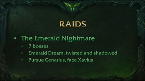 翡翠梦魇:一个包含7个Boss的团队本。翡翠梦境一直是玩家们梦寐以求的,现在我们爬过那些树就将抵达梦境。