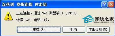 WinXP宽带连接出现错误代码676的原因可能是网卡故障或者电话占线,采用重启猫或重拨号码进行解决,下面小编就给大家介绍下宽带连接错误676的解决方法。