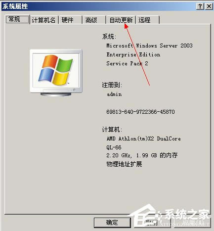 1、解决此问题的方法是-在桌面右键我的电脑-选择属性选项-选择关闭自动更新的选项卡。如图所示: