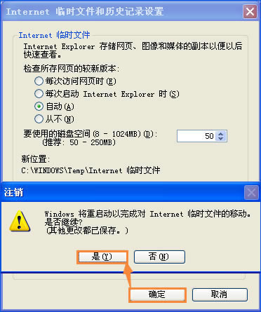 3、出现 Internet临时文件和历史记录 设置中可以查看当前IE缓存文件存放的目录路径。