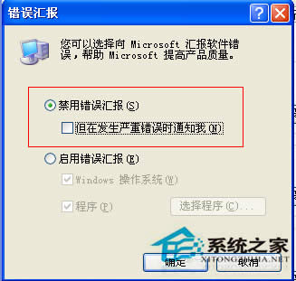 4、上图中,默认情况下是启用错误汇报的,所以要关闭这个错误汇报,勾选禁用错误汇报,并且去除但在发生严重错误时通知我,如图所示: