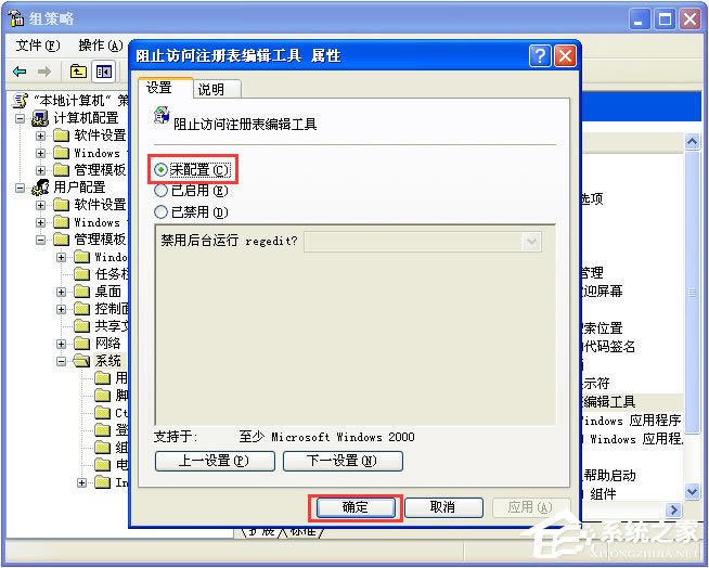 以上就是XP系统下regedit打不开注册表的解决办法,如果大家有遇到注册表打不开的情况,说明你的电脑限制了注册表编辑工具的访问权限,大家只要按照以上步骤开启相应的权限即可。