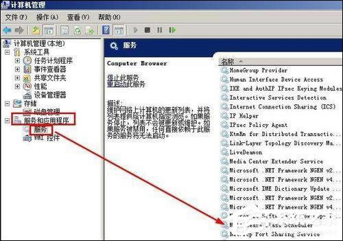 5、重启电脑以后,右键我的电脑,选择管理,然后点击服务与应用程序下的服务,找到Multimedia Class Scheduler。