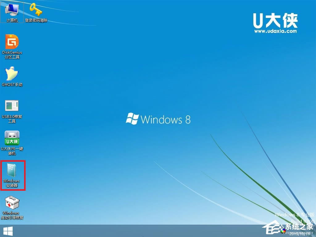 第二步:进入U大侠Win8PE系统后运行“U大侠PE一键装机”工具,安装系统!