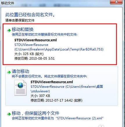 7、在出现的是否替换的对话框里面直接单击“移动和替换”;