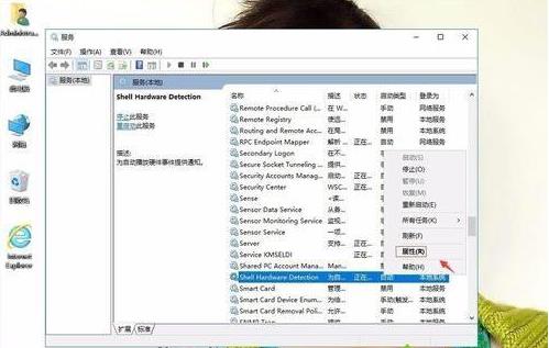 2、在服务中,找到Shell Hardware Detection服务。右键,属性;