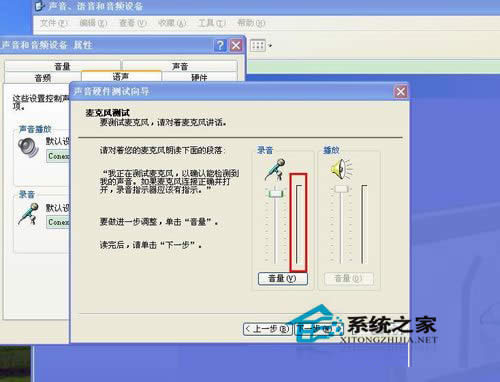 8.现在提示你要你对着麦克风说话,如果有麦克风是正常的,那么红框里应该会有颜色条,这里因为截图不便所以没有显示出来。