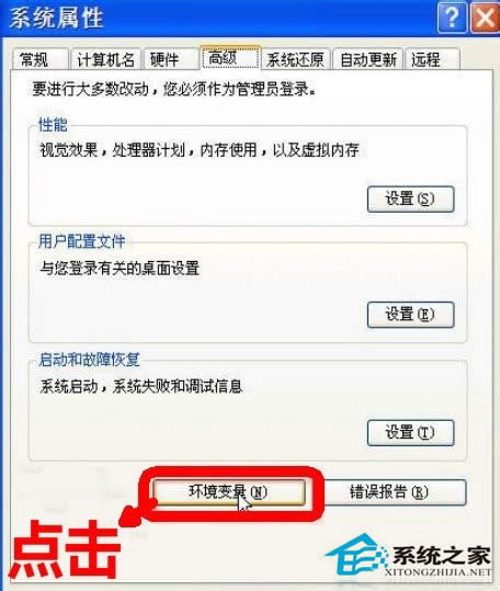 2.选择“高级”选项卡,点击“环境变量”:
