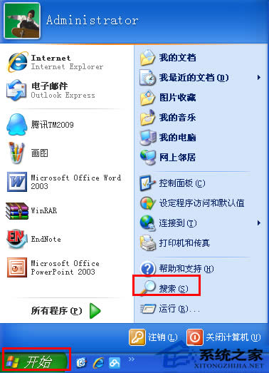 1.点击桌面左下角的开始菜单,选择搜索选项;